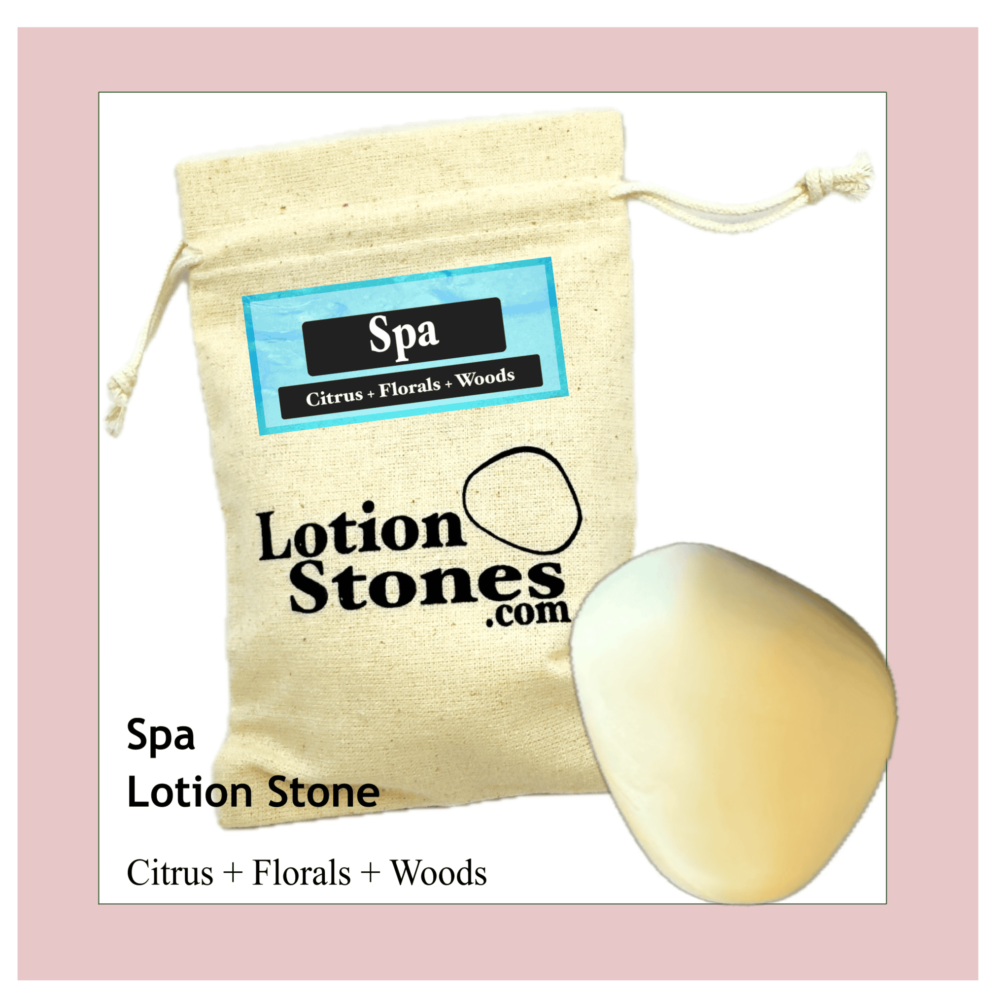 3.50 oz Luxury Lotion Stone in Spa packaged in a cotton bag in a box for gift giving