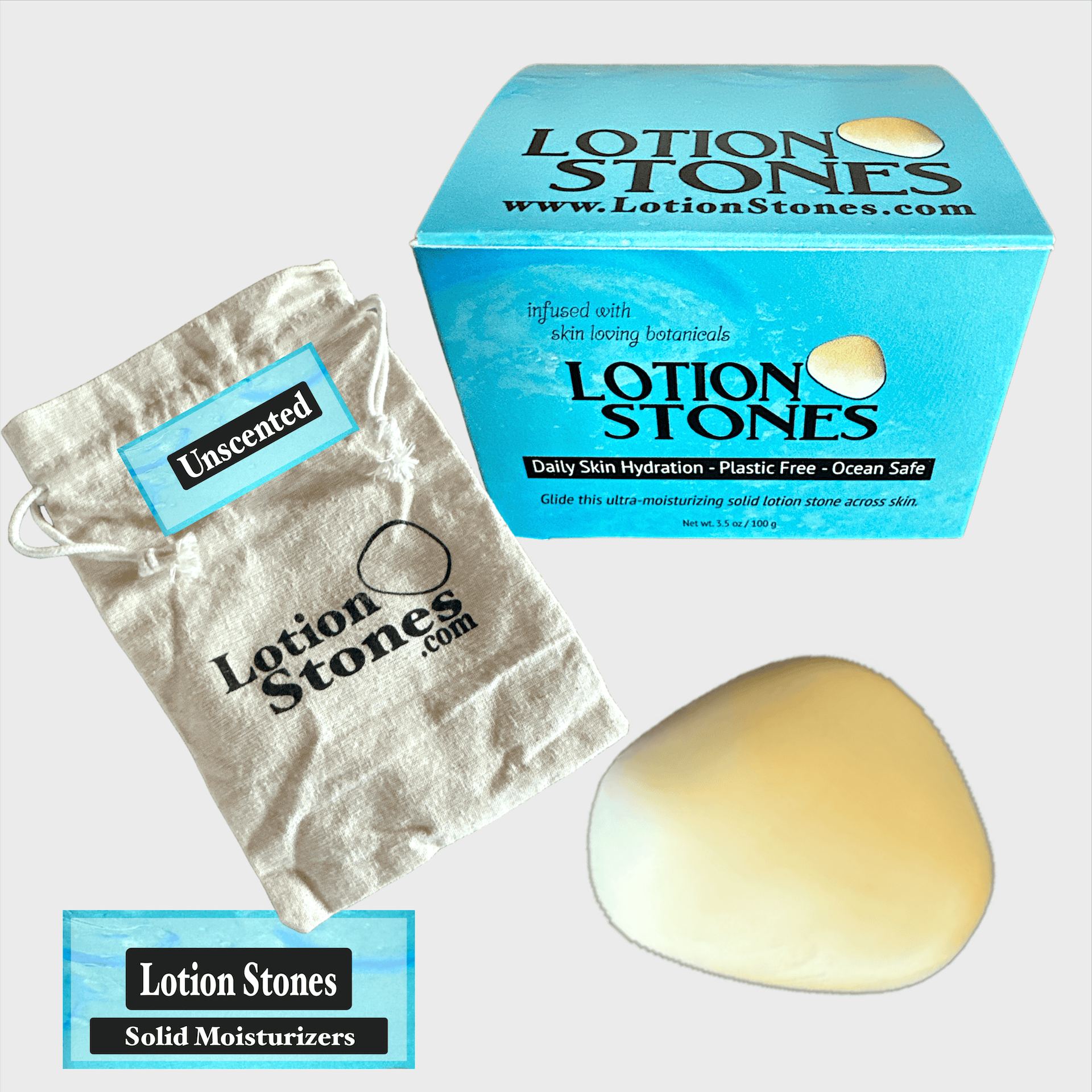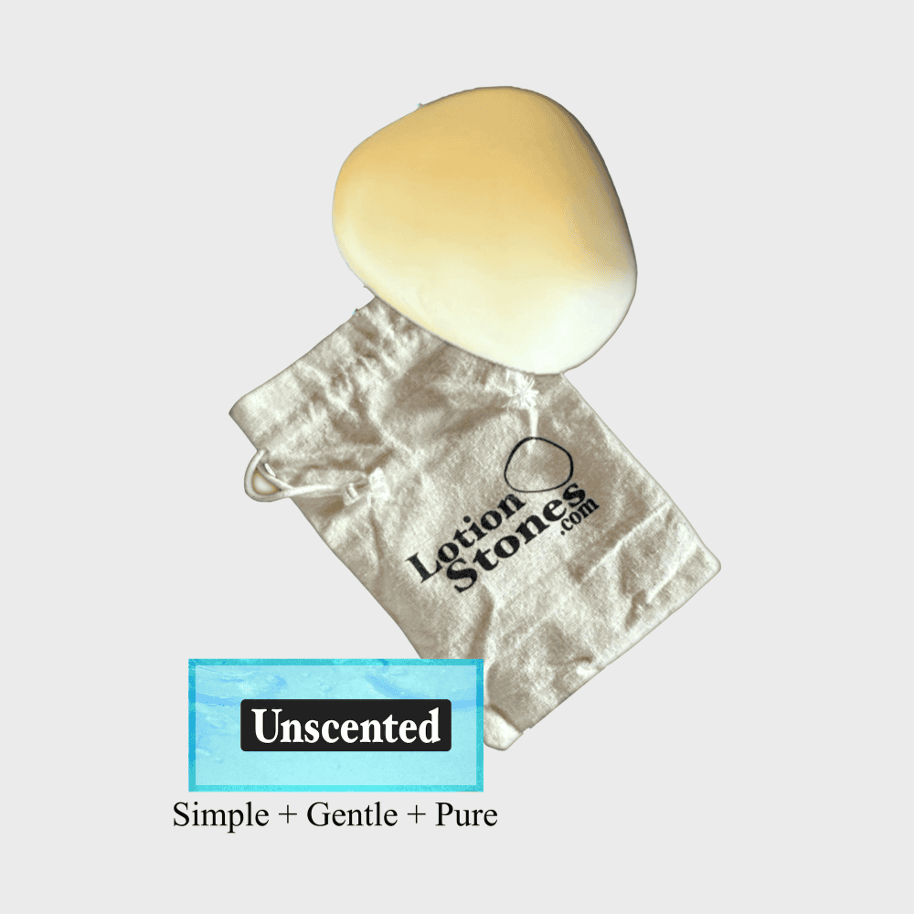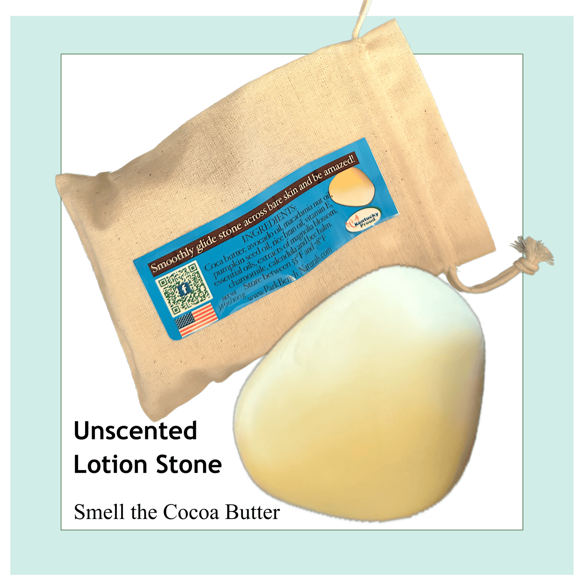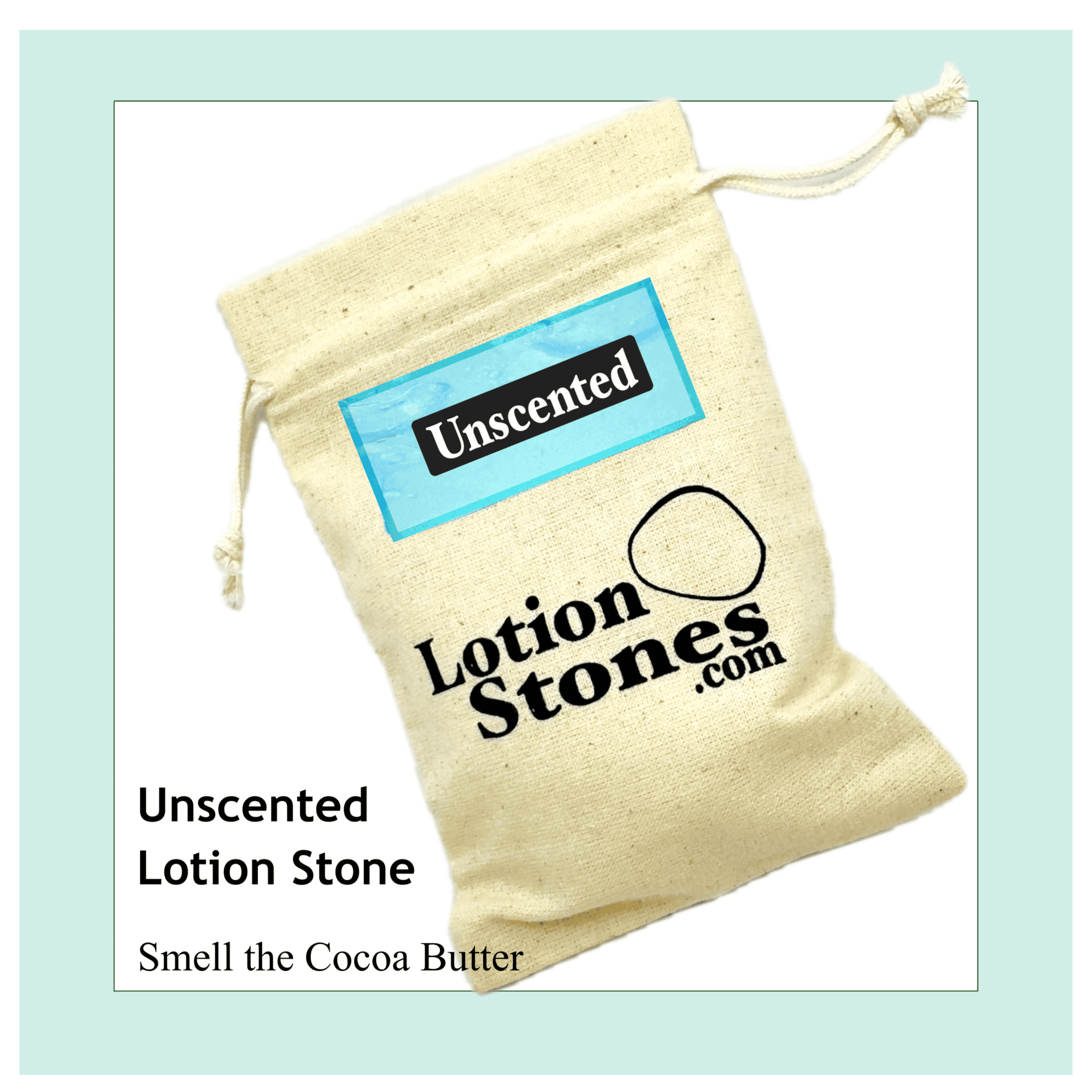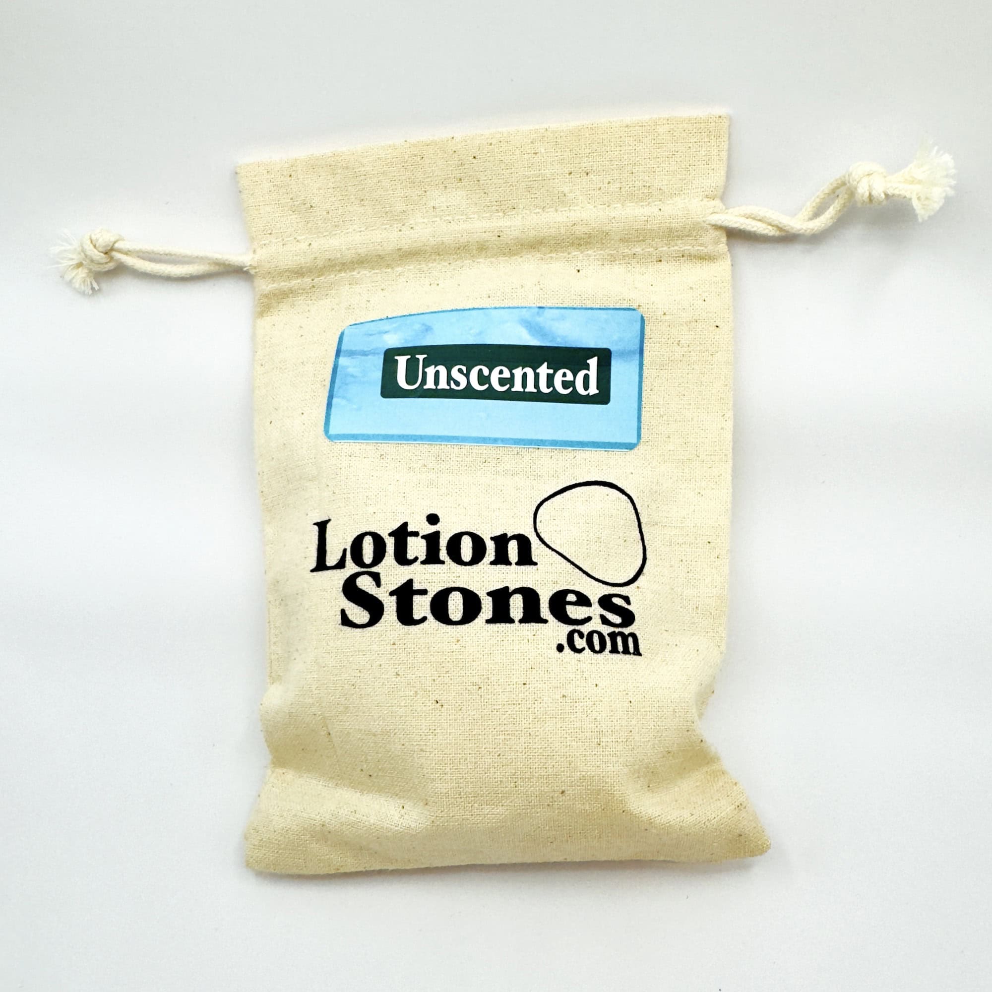 3.50 oz Luxury Lotion Stone – Unscented packaged in a cotton bag in a box for gift giving.